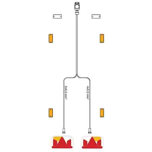 Met een lengte van 9,0 meter is deze kabelboom geschikt voor middelgrote tot langere aanhangers. De constructie voldoet aan de CE-markering en garandeert een correcte werking binnen het opgegeven spanningsbereik. De kabelboom wordt geleverd zonder DC-kabel en is ontworpen voor voertuigen met een 13-polige aansluiting. Een efficiënte en veilige oplossing voor het aansluiten van voertuigverlichting op aanhangers in landbouw-, transport- of logistieke toepassingen.