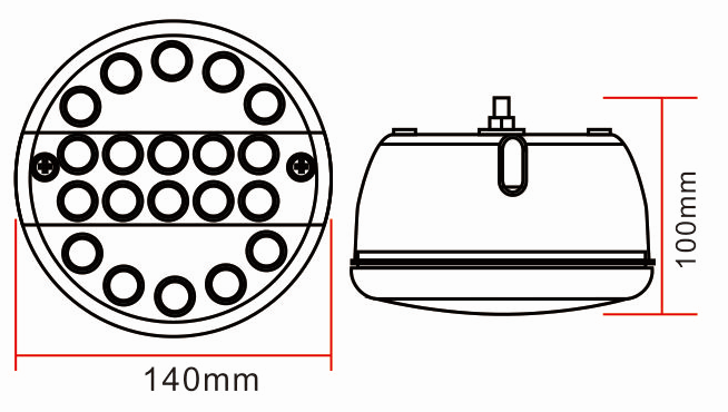Dit LED achterlicht uit de 140-serie van TRALERT® is ontworpen voor toepassingen op voertuigen met een elektrisch systeem van 12–24 V. Dankzij de ronde vorm van ø140 x 100 mm en het gebruik van duurzame materialen als een ABS-behuizing en een polycarbonaat lens is het geschikt voor montage in uiteenlopende omstandigheden. Dit achterlicht combineert de functies: achterlicht, remlicht en knipperlicht. De opbouwmontage gebeurt via schuifconnectoren.