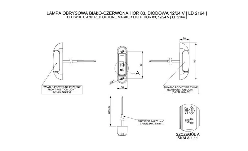 De Horpol MB-5300 serie omvat compacte LED breedtelampen die geschikt zijn voor toepassing op aanhangwagens, bedrijfswagens en landbouwvoertuigen. Dit model is uitgevoerd met rood-witte lichtkleur en functioneert als achter markeerlicht. Dankzij het multivoltage bereik van 12–24 V is de LED breedtelamp inzetbaar op een breed scala aan voertuigsystemen.