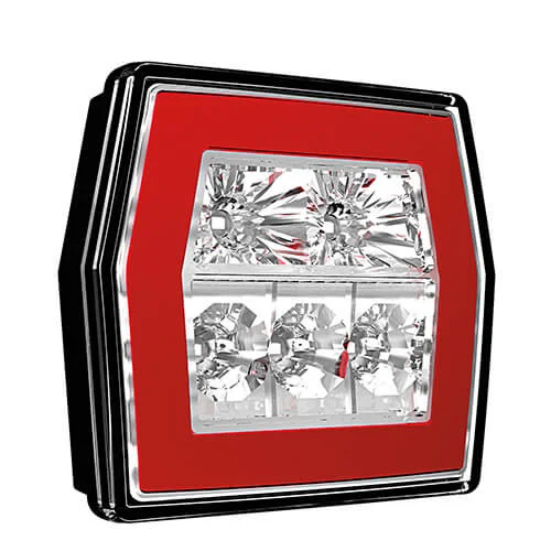 Dit LED achterlicht uit de 700-serie van Fristom is ontworpen voor voertuigen met een spanningsbereik van 12–24 V en wordt via een 5-PIN’s bajonetaansluiting aangesloten. Het vierkante ontwerp past binnen uiteenlopende voertuigtoepassingen waar betrouwbare signaalverlichting gewenst is. Dit achterlicht combineert de functies: achterlicht, remlicht en knipperlicht. De behuizing en lens zijn vervaardigd uit polycarbonaat voor een hoge slagvastheid en bestendigheid tegen omgevingsinvloeden.