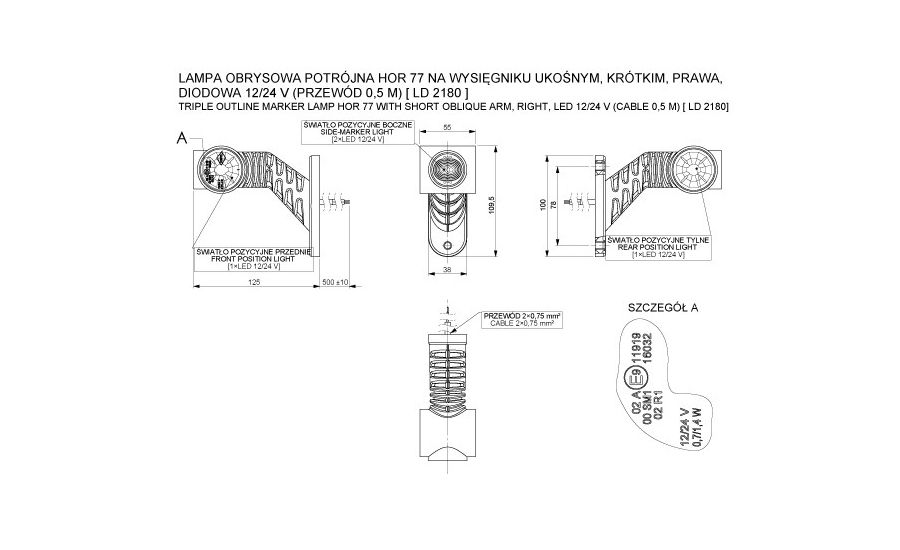 Deze LED breedtelamp uit de MB-4800 serie van Horpol is ontworpen voor montage aan de rechterzijde van voertuigen. De breedtelamp is geschikt voor toepassingen op 12–24 V elektrische systemen en combineert het achter markeerlicht en zij markeerlicht in één behuizing. Het model is uitgevoerd in drie kleuren: rood, wit en amber, conform de vereisten voor voertuigmarkering.
