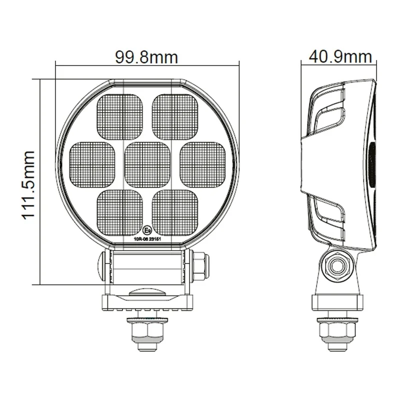 De werklamp levert een lichtopbrengst van 5.126 lm en werkt binnen een spanningsbereik van 9–30 V, met piekspanningsbestendigheid tot 36 V. De montage geschiedt via opbouw, en aansluiting is eenvoudig dankzij de 2-PIN Deutsch connector en 50 cm kabel. Met compacte afmetingen van 99,8 x 93,6 x 40,9 mm is deze werklamp geschikt voor voertuigen met beperkte inbouwruimte. De ECE R10- en CISPR25Class3-certificeringen bevestigen de elektromagnetische compatibiliteit binnen voertuigsystemen.