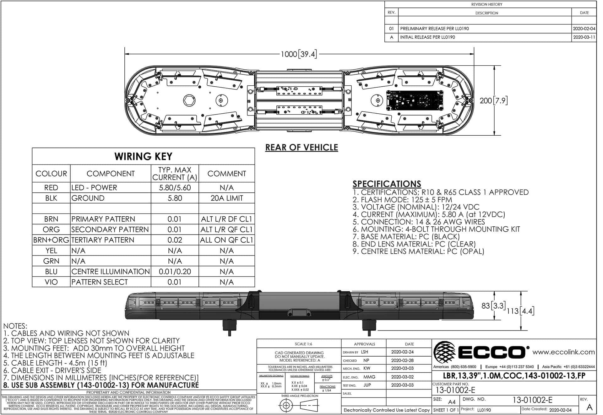De ECCO ESG 13 serie Ecco is een LED zwaaibalk ontworpen voor montage op hulpverlenings-, werk- en servicevoertuigen. Dankzij de instelbare beugelmontage is deze zwaaibalk flexibel te plaatsen op diverse voertuigtypes. De behuizing is uitgevoerd in aluminium en voorzien van een polycarbonaat lens, wat bijdraagt aan schok- en weerbestendigheid tijdens operationeel gebruik.