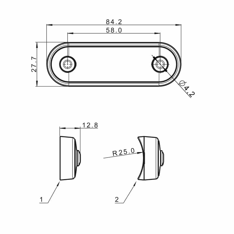 LED markeerverlichting inbouw amber 12-24v 5m. kabel