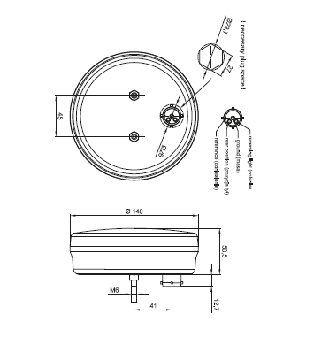 De behuizing met IP68-classificatie biedt volledige bescherming tegen stof en langdurige wateronderdompeling. Daarnaast voldoet dit LED achterlicht aan CE, ECE R10-, ECE R7- en ECE R38-regelgeving. De ronde vorm met een diameter van ø140 mm en een diepte van 50,5 mm maakt het product geschikt voor diverse voertuigcategorieën, waaronder trailers, bedrijfswagens en landbouwvoertuigen.
