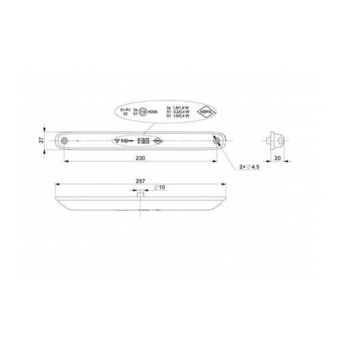 De Horpol VRM-110 uit de VC-100 serie is een LED achterlicht met geïntegreerde functies: achterlicht, remlicht en reflector. Dankzij het compacte stripformaat en de afmetingen van 257x27x20 mm is dit product geschikt voor toepassingen waar beperkte inbouwruimte beschikbaar is, zoals bij aanhangwagens, bedrijfswagens of andere voertuigen met een beperkte beschikbare montageruimte. Dit achterlicht wordt opbouw gemonteerd en wordt geleverd met een 100 cm lange kabel en een open draadeind-connector, wat installatie vereenvoudigt.