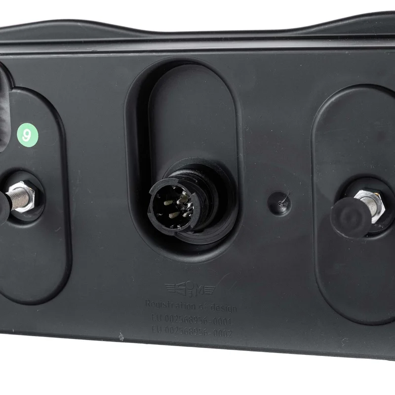 Dit LED achterlicht combineert de functies: achterlicht, remlicht, knipperlicht, dynamisch knipperlicht, mistlicht, achteruitrijlicht en kentekenverlichting. De unit voldoet aan diverse certificeringen, waaronder CE, ECE-R10, ECE-R3, ECE-R4, ECE-R6, ECE-R7, ECE-R23, ECE-R38 en ECE-R91, wat duidt op brede inzetbaarheid binnen Europese regelgeving.