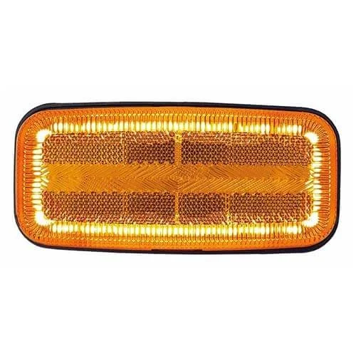 Dankzij een behuizing en lens vervaardigd uit polycarbonaat biedt dit markeringslicht een slagvaste oplossing voor opbouwmontage. De unit is voorzien van een 50 cm lange kabel met open draadeind voor een flexibele aansluiting. De afmetingen van het armatuur bedragen 125x60x24 mm. Het product is gecertificeerd volgens CE, ECE R10, ECE R91, ECE R3 en ECE R6-CAT5.