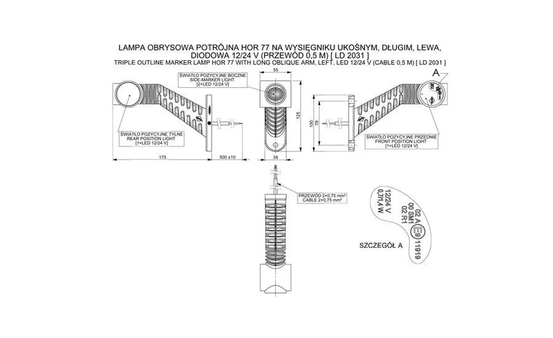 De Horpol MB-4791RWA uit de MB-4700 serie is een LED breedtelamp geschikt voor voertuigen met een spanningsbereik van 12–24 V. De lamp is uitgevoerd met drie afzonderlijke lichtkleuren: rood, wit en amber. Hiermee vervult deze LED breedtelamp zowel de functie van achter markeerlicht als zij markeerlicht, afhankelijk van de montagepositie op het voertuig.