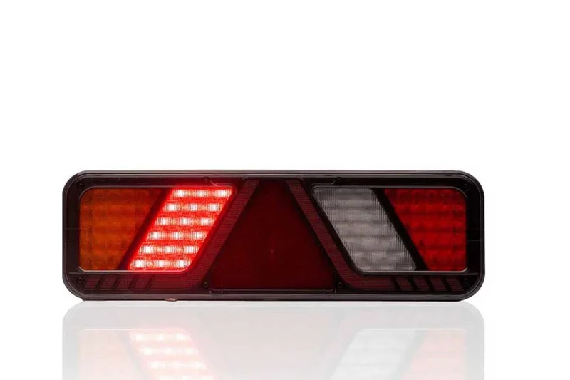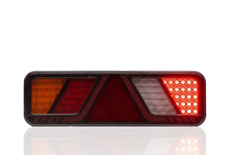 Dit achterlicht combineert de functies: achterlicht, remlicht, knipperlicht, mistlicht en achteruitrijlicht. Met een IP68-classificatie is het volledig stof- en waterdicht. De aanwezigheid van meerdere ECE-certificeringen, waaronder ECE-R10 en ECE-R23, garandeert naleving van relevante voertuigverlichtingsnormen.