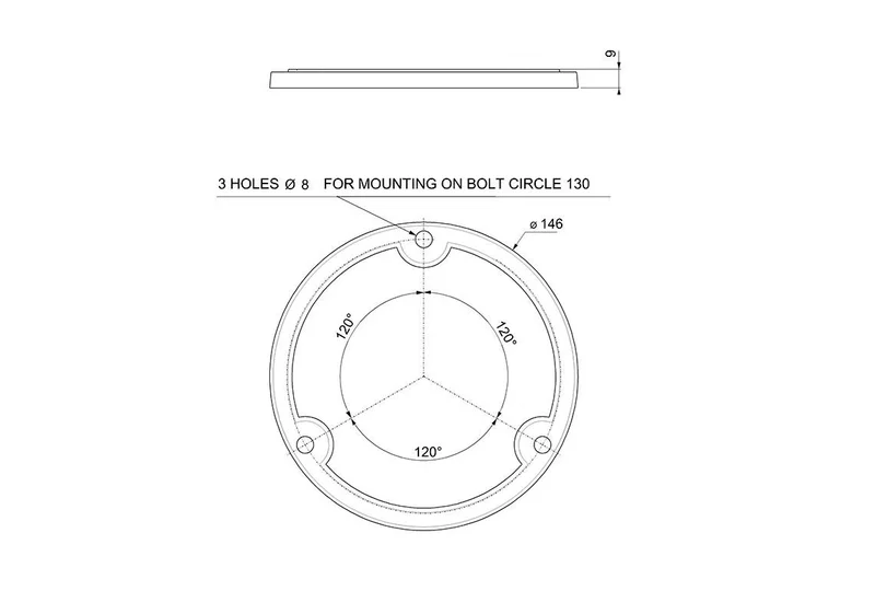 Deze accessoire van Vignal Group is ontworpen ter vereenvoudiging van de montage van zwaailampen. Het betreft een vlakke montage ring met een diameter van Ø130 mm en een hoogte van 9 mm. Dit component ondersteunt een solide en correcte installatie van signaleringsverlichting op uiteenlopende voertuigen of machinetypes. De ring is compatibel met zwaailampen met overeenkomstige bodemdiameter en montage-eisen.