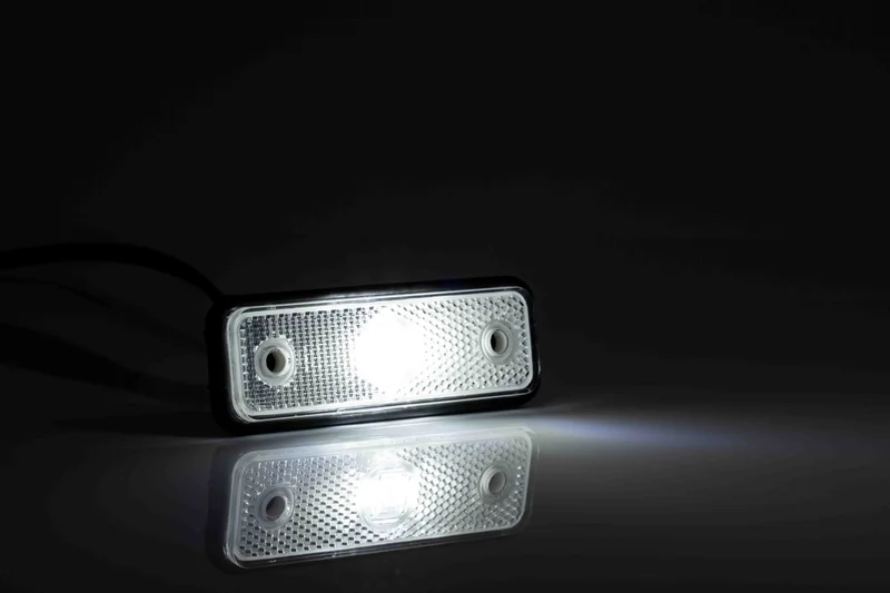 De Fristom MV-2950W uit de MV-2900 serie is een LED markeringslicht geschikt voor voertuigen met een elektrisch systeem van 12–24 V. Dankzij de slanke opbouwconstructie en het witte licht vormt dit markeringslicht een discrete, functionele aanvulling voor uiteenlopende voertuigen, waaronder aanhangwagens en bedrijfswagens. De reflectorfunctie is geïntegreerd volgens ECE R3-norm. Dit markeringslicht is voorzien van een kabellengte van 50 cm en een open draadeind voor directe aansluiting op het voertuignetwerk.
