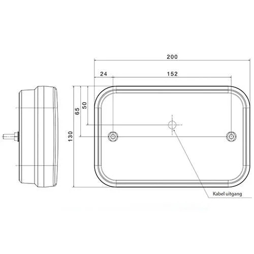 De compacte vormgeving van 200x130x50 mm maakt deze LED achterlicht inzetbaar voor voertuigen met beperkte inbouwruimte, zoals aanhangwagens. Dankzij de IP68-classificatie is het systeem volledig stofdicht en bestand tegen langdurige onderdompeling in water. Het product is conform CE, ECE-R10, ECE-R3, ECE-R7, ECE-R6 en ECE-R23, waarmee toepassing op de openbare weg is toegestaan volgens relevante regelgeving.