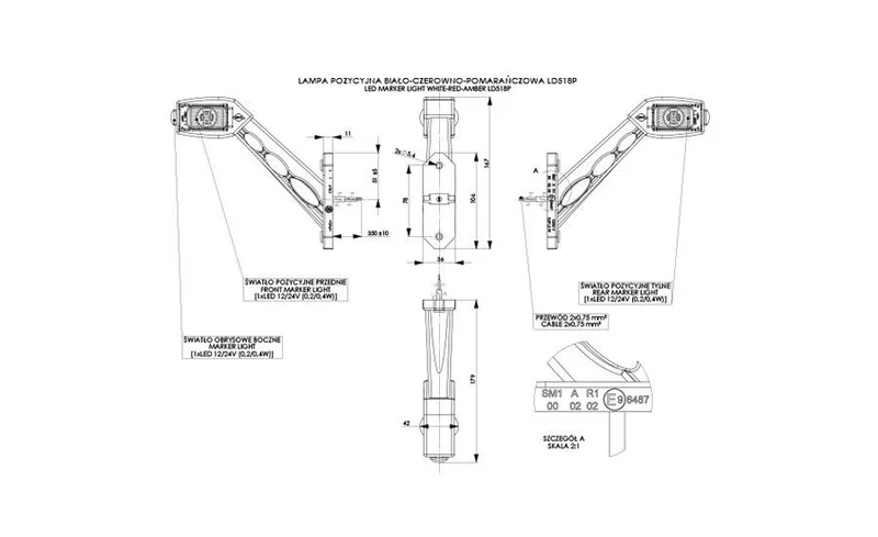 De behuizing is vervaardigd uit schokbestendig rubber in combinatie met een lens van polycarbonaat. Dankzij de IP68-classificatie is deze LED breedtelamp volledig stof- en waterdicht. De lamp is voorzien van een 45 cm kabel met open draadeind voor directe aansluiting. Het product voldoet aan CE, ECE-R10, ECE-R7 en ECE-R91 keuringseisen.