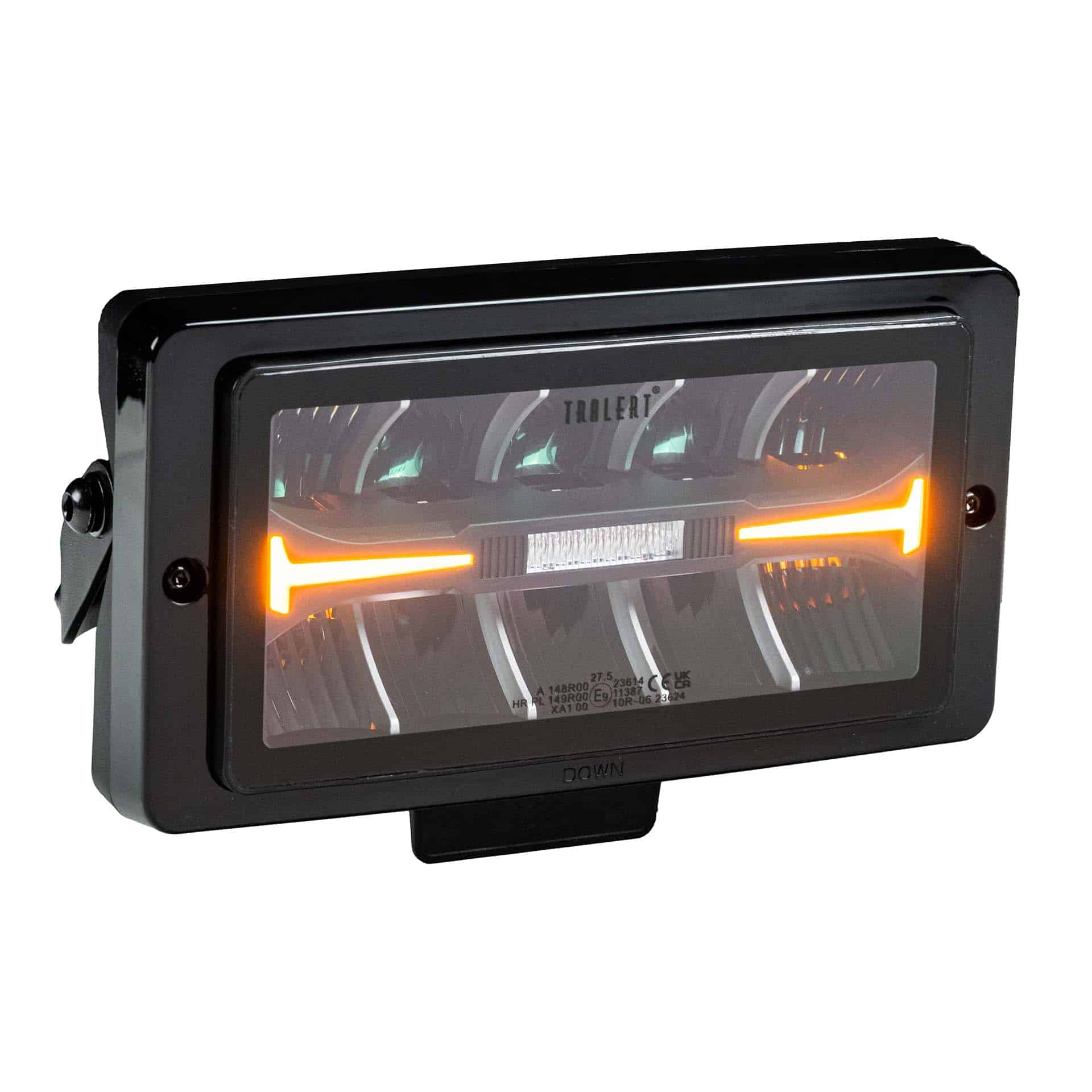 De TRALERT® Atlas serie omvat deze LED verstraler met Driving Beam-lichtbeeld, geschikt voor voertuigen die behoefte hebben aan gerichte voorwaartse verlichting in combinatie met signaleringsmogelijkheden. De behuizing en lens zijn beide uitgevoerd in polycarbonaat, hetgeen bijdraagt aan een verhoogde slagvastheid en duurzaamheid. Dankzij de spanningstoepassing van 10–30 V en een lichtopbrengst van 6.000 lm is de verstraler inzetbaar in uiteenlopende voertuigspecificaties binnen de commerciële en industriële sector.