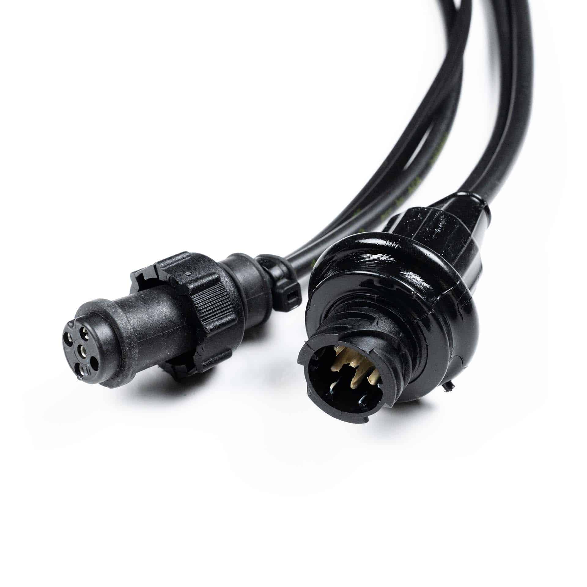 Deze aansluitkabel van TRALERT® is speciaal ontworpen voor gebruik in 24 V truck- en trailerinstallaties. De kabel is uitgevoerd met een 5-PIN’s bajonetconnector en is bedoeld voor de aansluiting van drie achterlichten, conform de vereisten van moderne verlichtingssystemen. Dankzij de Y-vormige configuratie wordt een efficiënte verdeling van het signaal naar meerdere armaturen mogelijk gemaakt, wat de installatie vereenvoudigt.